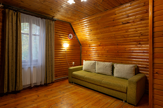 Номера «Полулюкс» – это отдельные номера в деревянных домиках с неповторимой энергетикой, которую можно ощутить только во время отдыха на природе. Внешняя компактность домиков приятно удивляет внутренним пространством, где может с комфортом разместиться пара или семья с детьми. В коттедже № 1 номер №2 расположен на первом этаже номер категории «Полулюкс» с отдельным изолированным входом и террасой. Номер двухкомнатный: спальня с удобной двуспальной кроватью и гостиная. В гостиной кухонная зона с холодильником, СВЧ, электрочайником и набором посуды. Также есть маленькая раскладная тахта. Ванная комната обустроена душевой кабиной, унитазом и умывальником. В коттедже №4 расположено три номера категории «Полулюкс». Каждый номер имеет отдельный изолированный вход. Номера двухкомнатные: спальня с удобной двуспальной кроватью и гостиная с камином. В гостиной также есть телевизор, раскладной диван, холодильник, СВЧ, электрочайник и набор посуды. Ванная комната обустроена душевой кабиной, умывальником и унитазом.
